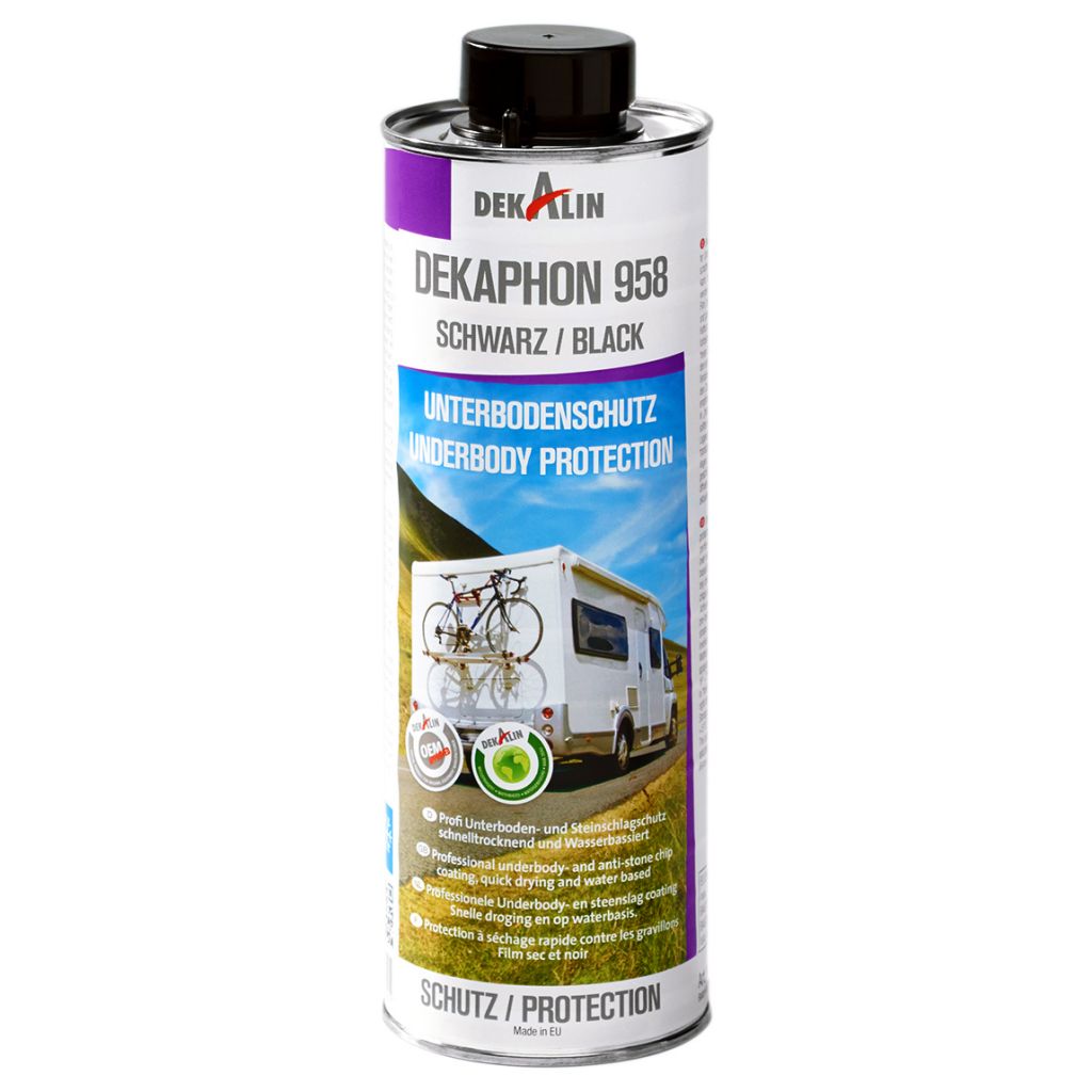 Umweltfreundlicher, wasserbasierter Allround-Unterbodenschutz zum Streichen und Spritzen. Er bildet einen schwarzen, elastischen Film, der sowohl den Holz-/GFK-Unterboden als auch angrenzende Rahmenteile aus Metall wirksam vor Steinschlag und Streusalz schützt.