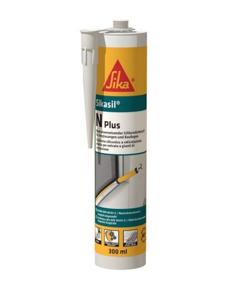Sikasil® N Plus ist ein elastischer 1-Komponenten-Dichtstoff auf Basis von neutralem Silikonkautschuk. Sikasil® N Plus härtet mit Hilfe von Luftfeuchtigkeit zu einem witterungsbeständigen, elastischen Dichtstoff mit sicherer Haftung an den gebräuchlichen Baustoffen aus. Neutralvernetzender Silikondichtstoff für Verglasungen und Baufugen.