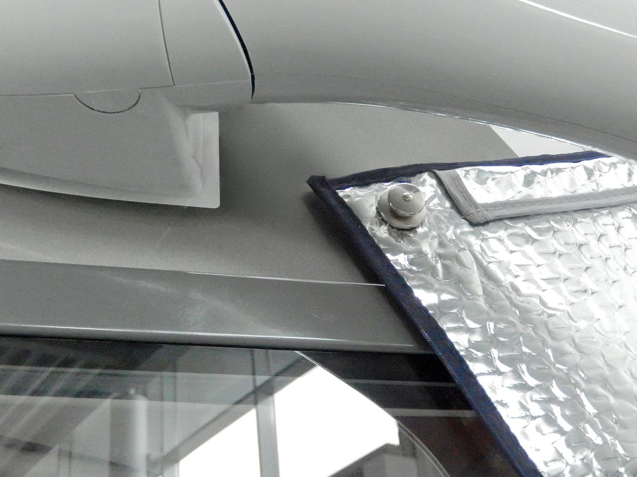 Für integrierte Reisemobile, hergestellt aus Thermofolie mit ringsum eingefassten Kanten. Die Thermomatte wird außen an der Frontscheibe befestigt. Ein innenliegender Gummispanner entlang der Oberkante sorgt für einen dichten Abschluss, entlang der Unterkante befinden sich 4 Abspannlaschen mit Kunststoffösen. Die im Lieferumfang enthaltenen Gummispanner können je nach Bedarf mit der Schere gekürzt werden. Sie werden an der Halterung des oben angebrachten Außenspiegels oder alternativ mittels der Schnapphaken der Gummispanner an optionalen LOXX-Druckknöpfen befestigt, diese können sowohl geklebt als auch geschraubt werden; Maße B 267 x H 130 cm.